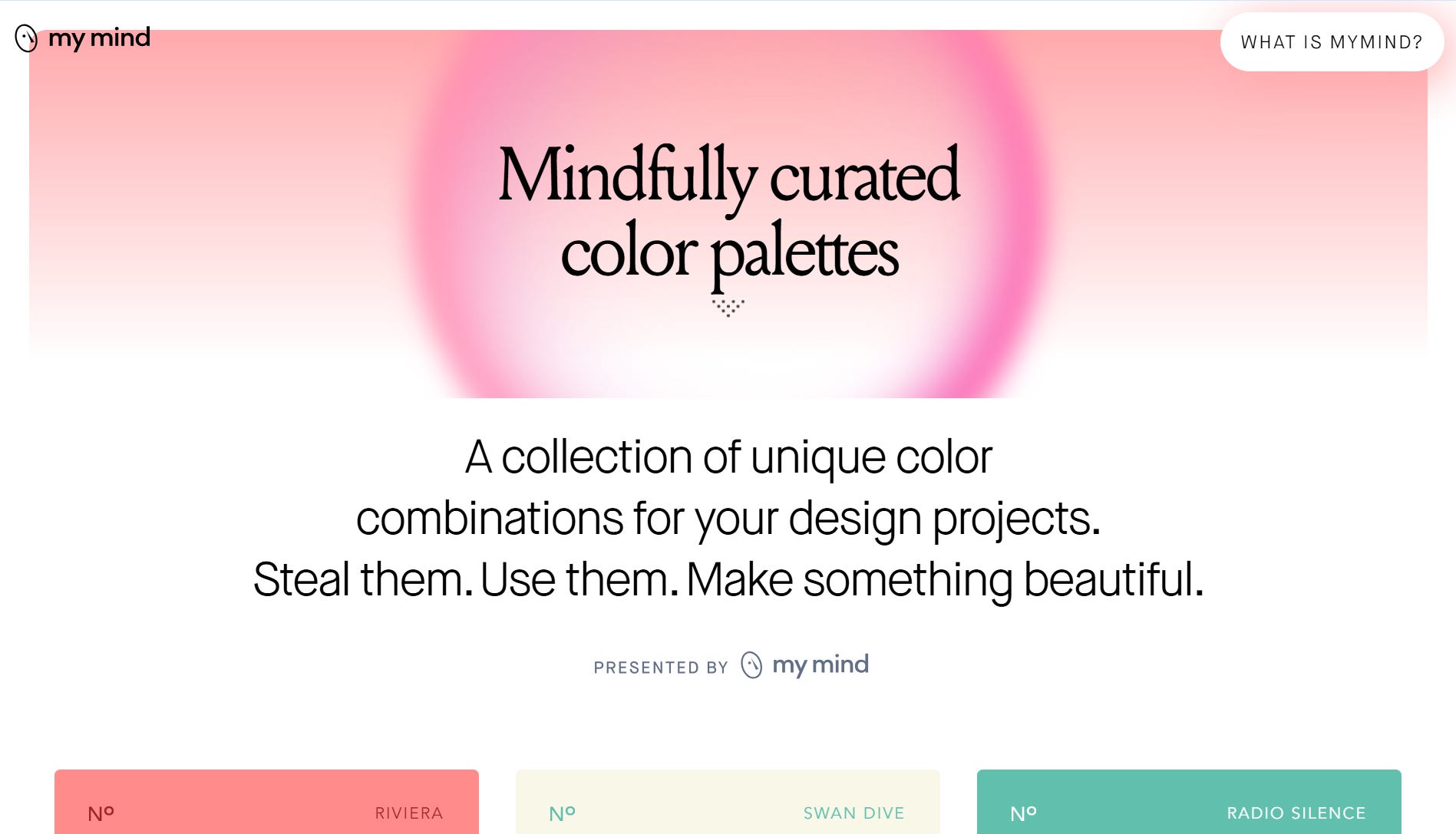 mymind gathered 111 color palettes. All of them are soft. All of them are a little stunning. The kind of colors that aren’t loud but somehow make everything around them feel more considered. They say you can steal them. Take what you need and bring them somewhere new.